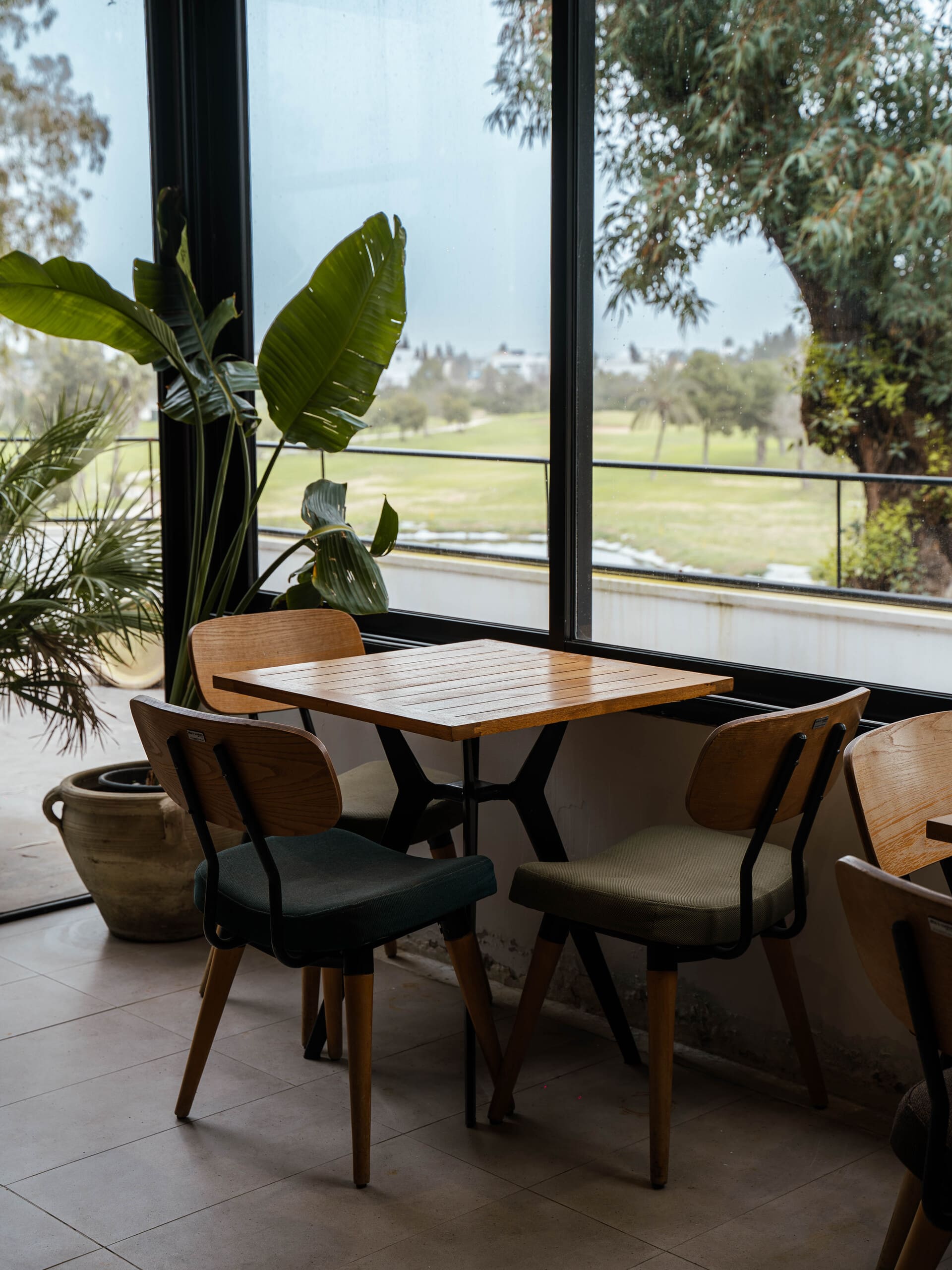Une cuisine raffinée avec vue panoramique sur le parcours, idéale pour un déjeuner ou un événement privé.